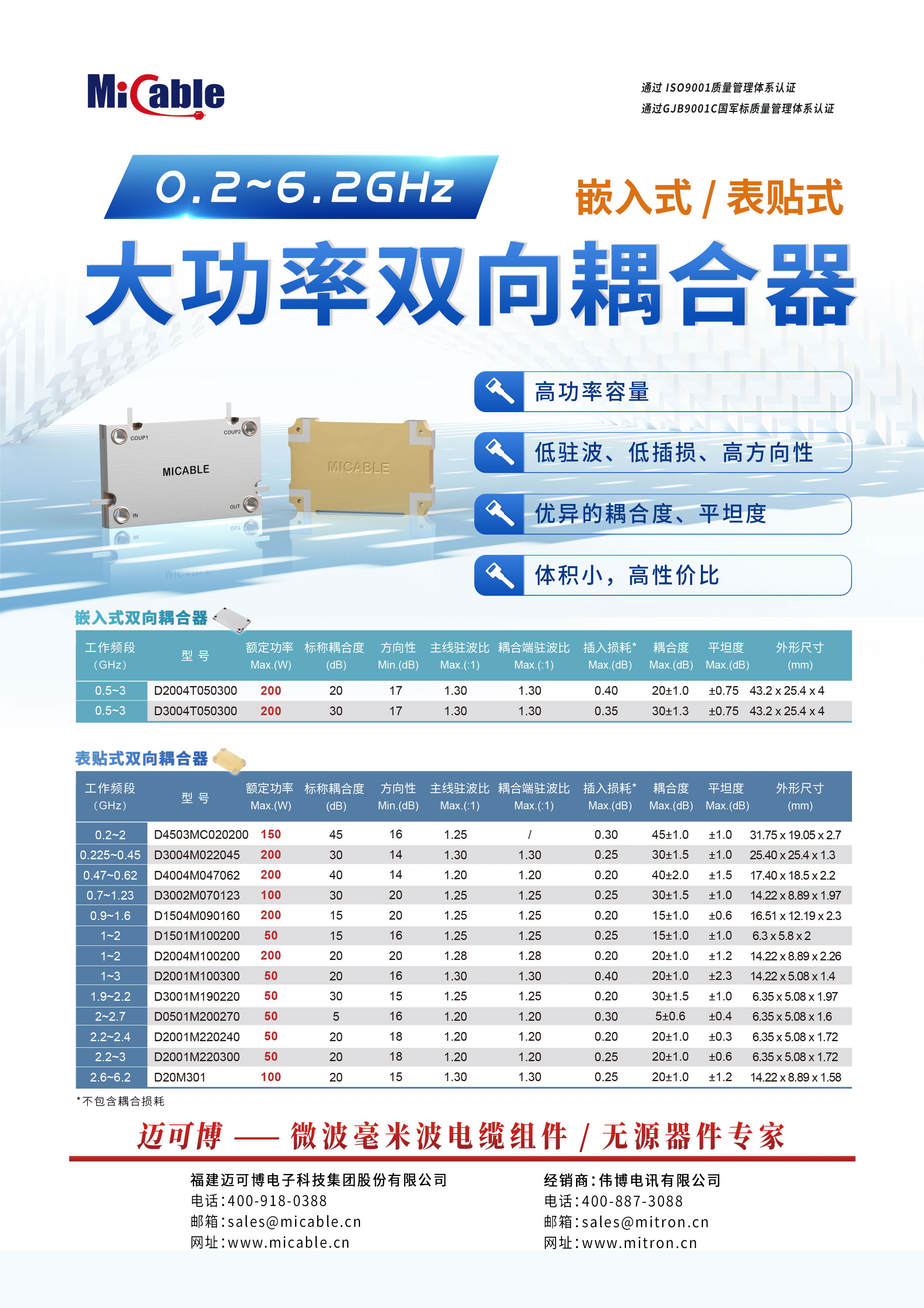 大功率表贴/嵌入式双向耦合器